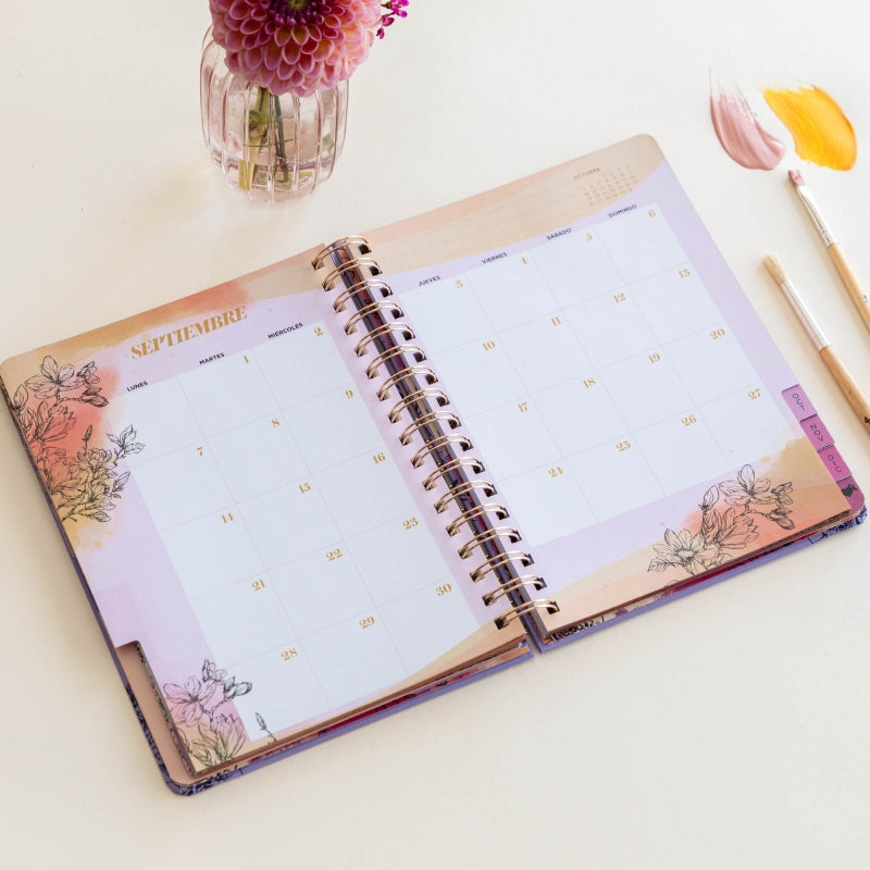 La agenda anual 2026 de La Vecina Rubia llega con sus frases más brillantes, diseño floral de estilo acuarela y cantos estampados en cobre. Formato semana vista, stickers, pósits, bolsillo doble, calendario menstrual y páginas para colorear. Ideal para fans que necesitan ternura, humor y organización. Porque planificarte también puede tener brillibrilli.
